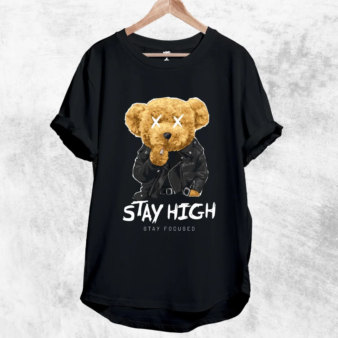STAY HIGH Cotton Longline T-Shirt By Dab Shark. Flaunt your style with the awesome collection of Stylish T-shirts from Dab Shark.